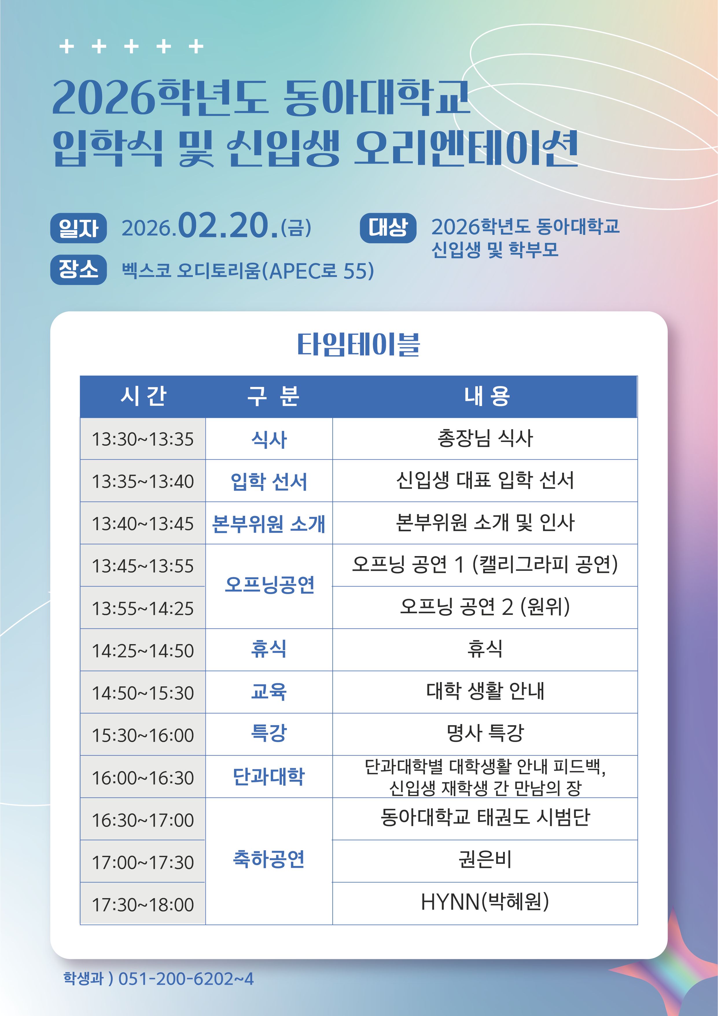 | Á¦¸ñ | [°øÅë] 2026Çг⵵ µ¿¾Æ´ëÇб³ ÀÔÇÐ½Ä ¹× ½ÅÀÔ»ý ¿À¸®¿£Å×ÀÌ¼Ç ¾È³» | ||