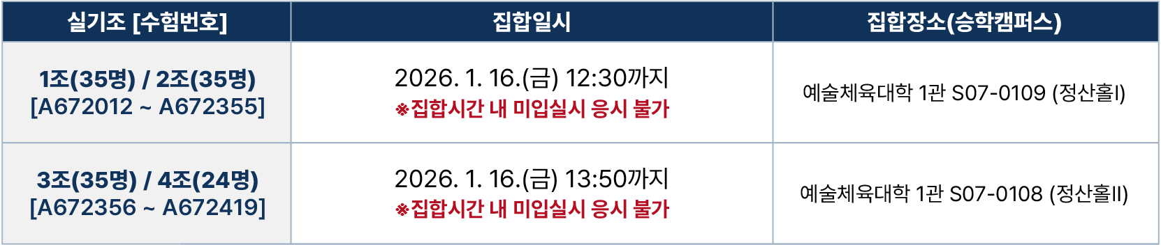 ¡Ø ¼öÇè¹øÈ£¿¡ µû¶ó ÁýÇÕ³¯Â¥, ½Ã°£, Àå¼Ò°¡ »óÀÌÇϹǷΠ¹Ýµå½Ã À¯ÀÇÇÏ¿© È®ÀÎÇϽñ⠹ٶø´Ï´Ù.